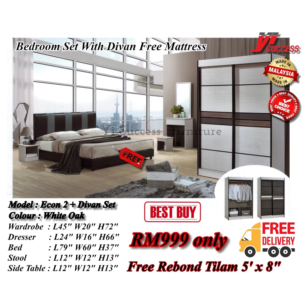 Yi Success Econ 2 Bedroom Set Furniture Set Bilik Tidur Free Tilam Queen 4 X 6 Wardrobe With Dressing Table Almari Shopee Malaysia